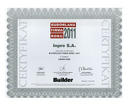 Inpro S.A., jeden z czołowych trójmiejskich deweloperów, notowany na GPW, otrzymał wyróżnienie BUDOWLANA FIRMA ROKU 2011 w kategorii DEWELOPER, przyznawane przez Redakcję i Radę Programową branżowego miesięcznika BUILDER. Prezes Zarządu Spółki Piotr Stefaniak, został doceniony przez Kapitułę Konkursu zdobywając SPECJALNE WYRÓŻNIENIE za skuteczne zarządzanie firmą i jej sukcesy rynkowe w 2011 roku.