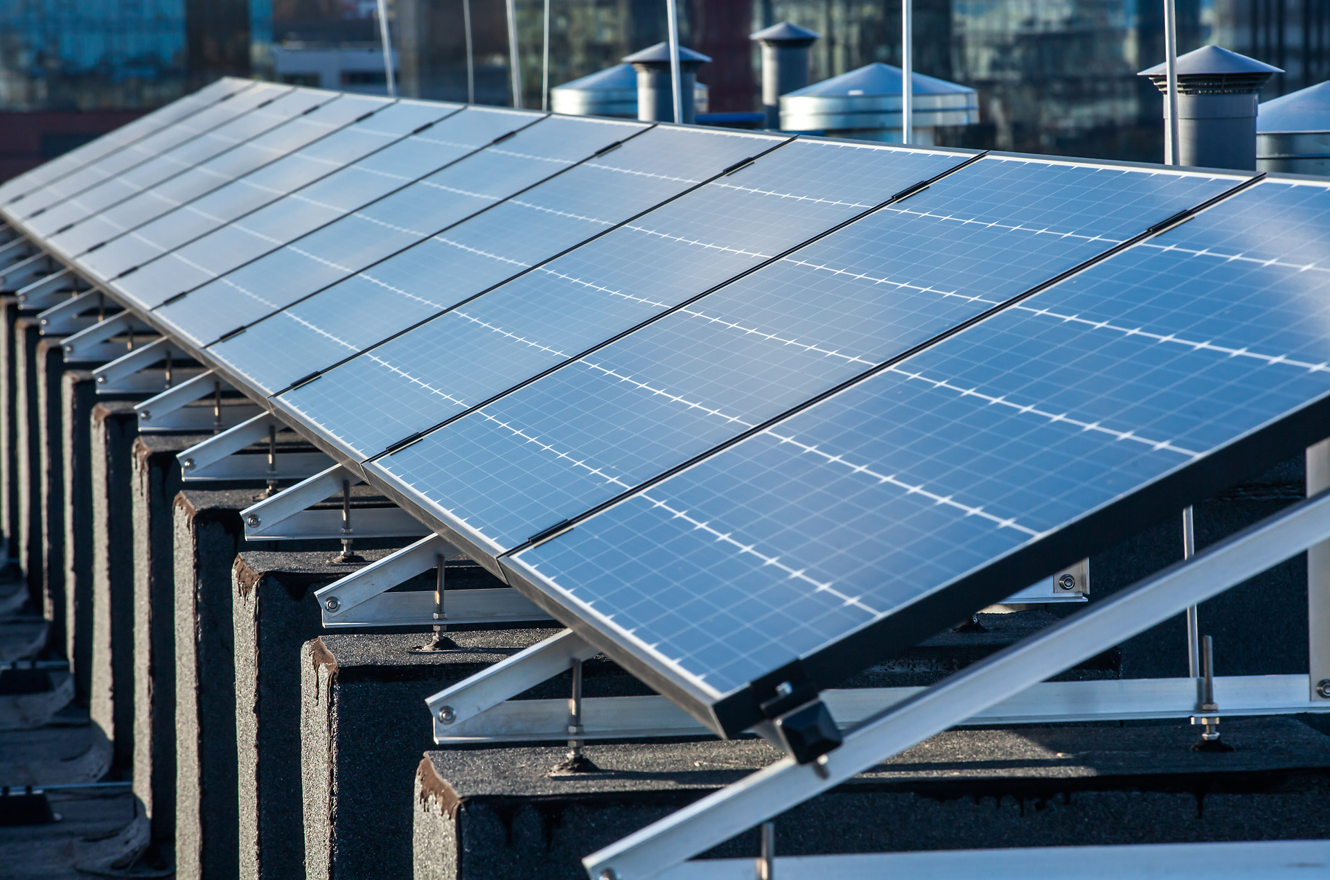 Na dachach zostały zamontowane panele fotowoltaiczne. Jest to jedno z proekologicznych rozwiązań, które systematycznie wprowadza INPRO w swoich projektach.